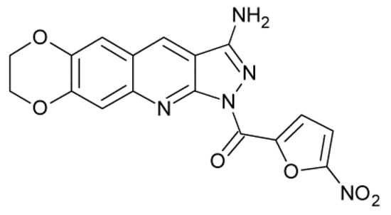 Figure 27. 3-amino-1-(5-nitro-2-furoyl)-6,7-ethylenedioxy-1H-pyrazolo[3,4-b]quinoline.