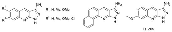 Figure 36. 1H-Pyrazolo[3,4-b]quinolines synthesized and tested by Yang et al. and Ho et al. [91,92].