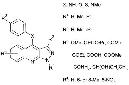Figure 35. Pyrazolo[3,4-b]quinolines tested by Zhang et al. [57].