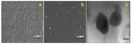 The SEM analysis shows that the UFNBRP is uniformly dispersed in epoxy resins, due to the great interface and intense interactions, including hydrogen bonding and chemical reaction on the interface between UFNBRP and epoxy resin []. The epoxy resin composite modified by UFNBRP has a large interface because of the large specific surface area of nanoparticles, it has also been found that the uniform dispersion of elastomer nanoparticles can be certified by sufficient blending time and proper UFNBRP composition [,,]. According to the TEM analysis, the morphology of the elastomeric nanoparticles is spherical, and there is a proper dispersion in each sample containing the elastomeric nanoparticles. Due to the higher resolution of the TEM images, the results acquired from SEM images are confirmed to be related with the size and morphology of the nanoparticles.