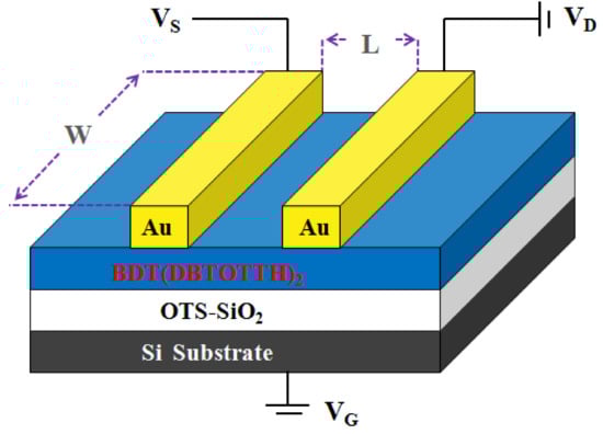 Schematic configuration of the top contact OFET device based on BDT(DBTOTTH)2.