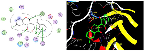 Automated docking simulation studies were performed using Molecular Operating Environment (MOE®) version 2014.09. The X-ray crystallographic structures of the target AKR1B10 and PPARγ from the protein data bank (PDB: 4JIH, 7E0A) were obtained from the protein data bank. The target compounds were constructed into a 3D model using the builder interface of the MOE® program after checking their structures and the formal charges on atoms by 2D depiction.