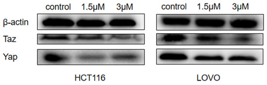 Electrophoresis of Yaz and TAZ protein expression in colon cancer cells after DTB intervention.