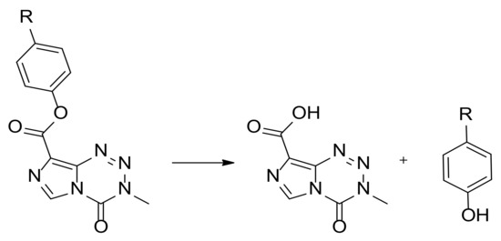 The hydrolysis of these TMZ esters yield TMZ acid and the corresponding alcohols (Scheme 1) and can be readily monitored by high-performance liquid chromatography (HPLC).