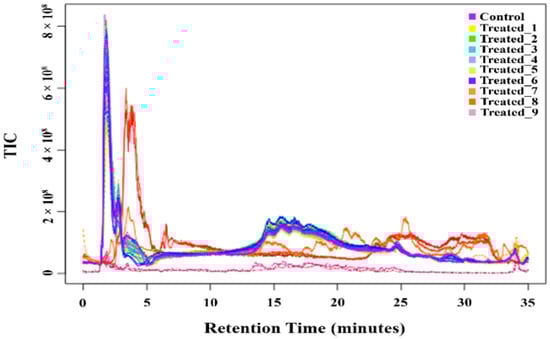 - Smith, C.A.; Want, E.J.; O’Maille, G.; Abagyan, R.; Siuzdak, G. XCMS: Processing mass spectrometry data for metabolite profiling using nonlinear peak alignment, matching, and identification. Anal. Chem. 2006, 78, 779–787. [Google Scholar] [CrossRef]