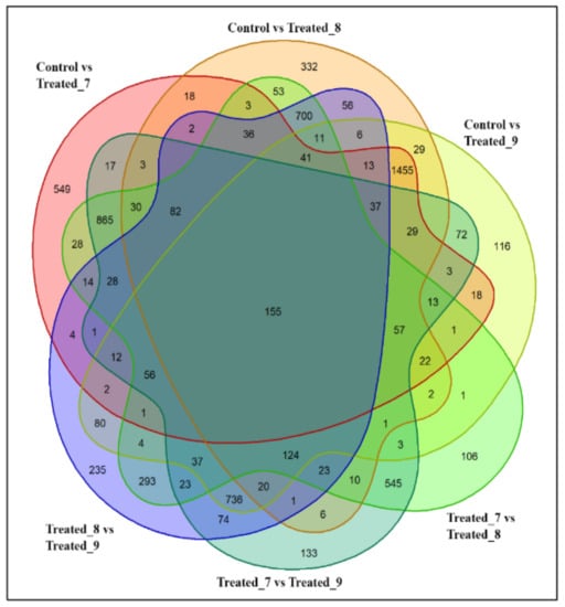2.3. Differential Production of Metabolites during the Stressed Condition and Identification of Significant Metabolites