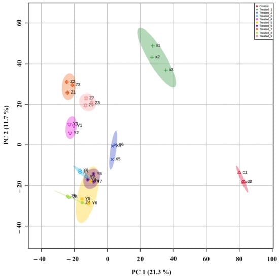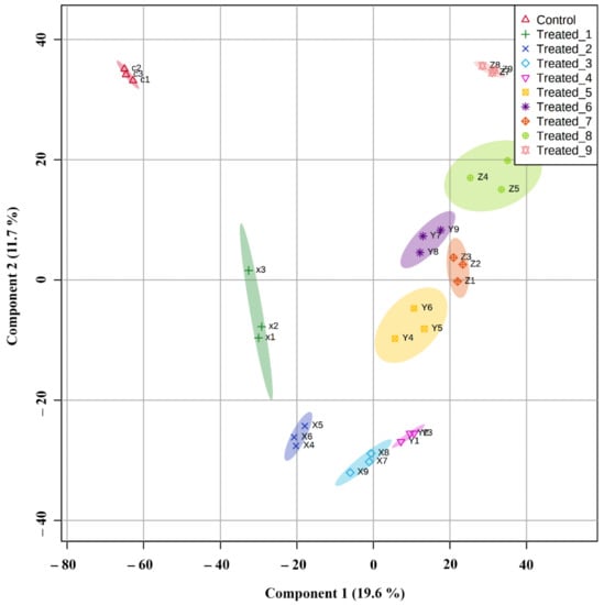 2.6. Principle Component Analysis and Partial Least Square Discriminant Analysis of Significant Metabolites in the Classification of Experimental Groups