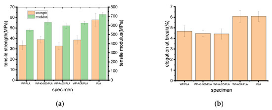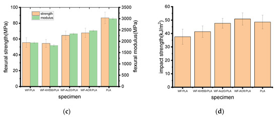- Guo, R.; Ren, Z.; Bi, H.; Song, Y.; Xu, M. Effect of toughening agents on the properties of poplar wood flour/poly (lactic acid) composites fabricated with Fused Deposition Modeling. Eur. Polym. J. 2018, 107, 34–45. [Google Scholar] [CrossRef]