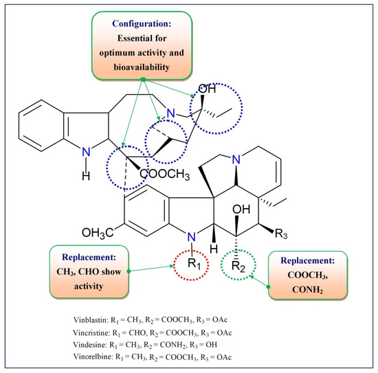 VAs are frequently utilized as anticancer medications, either alone or in combination with other medicines, to treat a number of cancers, such as breast cancer, osteosarcoma, and acute lymphocytic leukemia. They were first used to treat juvenile hematologic malignancies and then expanded to include solid and adult hematologic malignancies [21,30,31]. Table 1 lists the most important VAs, together with their clinical use and toxicological characteristics. VBL, VCR, and VRL are all on the World Health Organization’s Essential Medicines List [32].