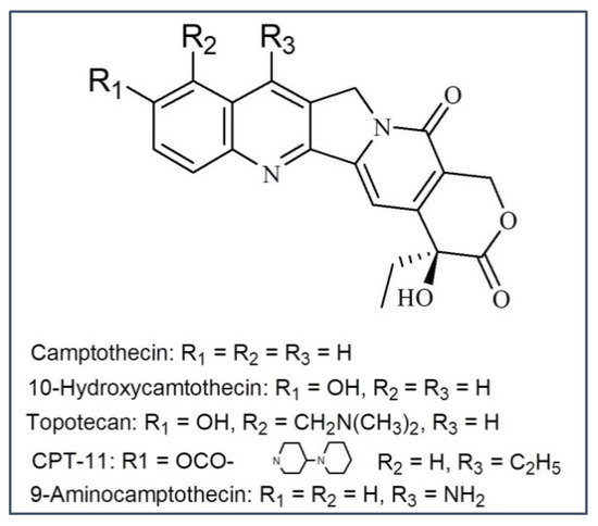 - Li, Q.-Y.; Zu, Y.-G.; Shi, R.-Z.; Yao, L.-P. Review Camptothecin: Current Perspectives. Curr. Med. Chem. 2006, 13, 2021–2039. [Google Scholar] [CrossRef]