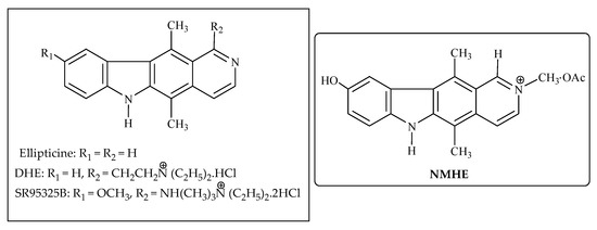 - Stiborová, M.; Frei, E. Ellipticines as DNA-targeted chemotherapeutics. Curr. Med. Chem. 2014, 21, 575–591. [Google Scholar] [CrossRef]