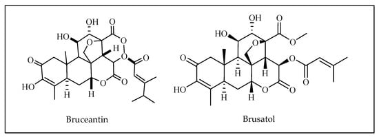- Duan, Z.-K.; Zhang, Z.-J.; Dong, S.-H.; Wang, Y.-X.; Song, S.-J.; Huang, X.-X. Quassinoids: Phytochemistry and antitumor prospect. Phytochemistry 2021, 187, 112769. [Google Scholar] [CrossRef] [PubMed]