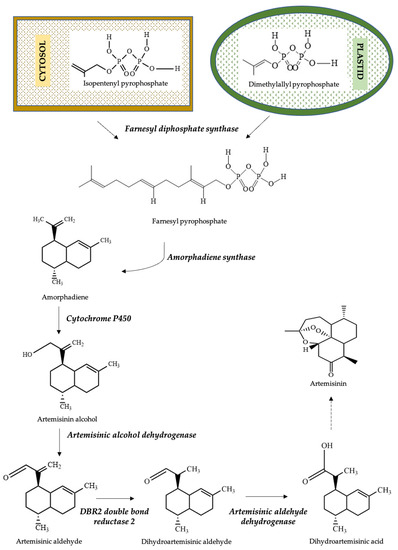 - Liu, C.; Zhao, Y.; Wang, Y. Artemisinin: Current state and perspectives for biotechnological production of an antimalarial drug. Appl. Microbiol. Biotechnol. 2006, 72, 11–20. [Google Scholar] [CrossRef] [PubMed]