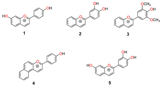 Chemical structures of the flavylium form of the compounds evaluated in this work as potential candidates to inhibit Cb5R.