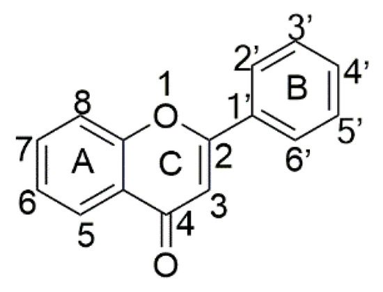 Flavonoids, which consist of two phenyl rings (A and B) and heterocyclic ring (C), are series of benzo-g-pyrone derivatives distributed ubiquitously in plants (Scheme 1) [1,2,3,4]. In the past two decades, flavonoids have been reported to possess wide-ranging pharmacological properties such as anti-inflammatory [5], decreasing the expansion of the coronary artery [6], treating leukemia [7], inhibiting histamine-induced gastric acid secretion [8,9] and antiviral activity including coronavirus infection [10,11], and many other applications [12,13]. Flavonoids have also been suggested as a possible cancer chemopreventive agent on the basis of its inhibitory effects on tumor initiation, promotion, and progression [14,15,16].