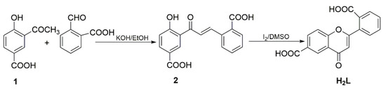 4.2. Synthesis of Flavone-6,2′-dicarboxylic Acid (H2L)