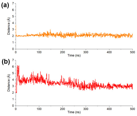 (a) Average distance between 4-OH of pyrogallol moiety in DF-47 and two Mg2+. (b) Distance between 4-OH of pyrogallol moiety in DF-51 and Mg2+.