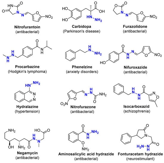 - Popiołek, Ł. Updated Information on Antimicrobial Activity of Hydrazide-Hydrazones. Int. J. Mol. Sci. 2021, 22, 9389. [Google Scholar] [CrossRef]
