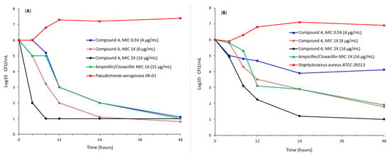 3.3.3. Time Kill Assay of Antibacterial Compounds