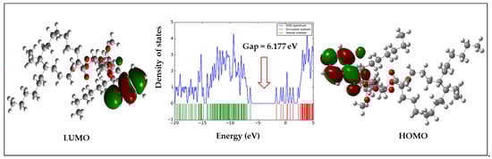 DOS plot and HOMO-LUMO energy gap of derivative 6.