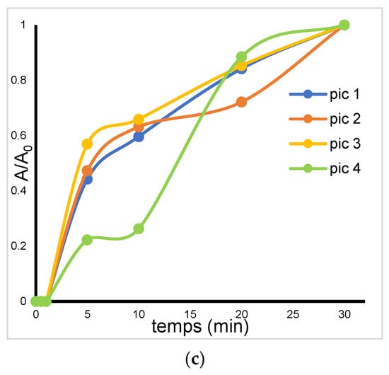 The first 5 min of non-catalytic ozonation of all organic compounds gave rise to new adsorption bands between 205 nm and 230 nm in the UV-Vis spectra of the reaction mixtures (Figure 4). Except for DCF, these new bands increased in intensity during ozonation due to the progressive enhancement of the formation of oxidized derivatives. The latter are known to also absorb in this UV-Vis region, thereby shading the progressive depletion of the parent organic molecules [,,,,,,,,,].