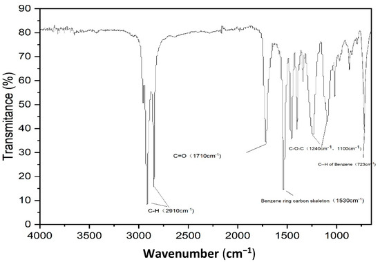 Fourier transform infrared spectra were used to investigate the changes in the chemical properties of pristine and oxidized PETs. The FTIR spectra of pristine PET are shown in Figure 3. Several characteristic peaks of PET were observed. The adsorption peak at 1720 cm−1 was caused by the stretching vibration of the carbonyl group (C=O). The 1240 cm−1 and 1100 cm−1 were the adsorption peak caused by stretching vibration of the ether bond (C-O-C) and carbon-oxygen bond (C-O) of the ester bond, which indicated the existence of esters. The 723 cm−1 was the adsorption peak caused by plane bending vibrations of the benzene rings in PET [32]. The oxidation of PET can cause the rupture of the ester bond, forming the carboxylic acid end group and vinyl end group. The FTIR spectra of oxidized PETs are shown in Figure 4. The intensity of oxygenated functional groups such as the carbonyl group and C-O-C and C-O of ester bond was slightly increased. The carbonyl index (CI) is used to quantitatively evaluate MPs’ oxidation degree. It refers to the ratio of the adsorption intensity of the carbonyl group to the adsorption intensity of a reference peak (). The reference peak selected in this paper is the hydrocarbon bond at the wavelength of 2850 cm−1 according to CI definition [32]. The higher value of CI the higher the oxidation degree of MPs [33,34]. The CI values of pristine PET, ozonized PET, and ozonized-chlorinated PET was 0.818, 0.897, and 0.877, respectively. Furthermore, we investigated the XPS of PET with different oxidation processes as shown in Table 1 and Figure 5. The binding energy of the first peak on the spectrum is 531.1–531.7 eV, which is derived from the carbonyl group of PET. The binding energy of the second peak on the spectrum is 531.9–532.4 eV derived from the hydroxyl groups and O-C-O groups of PET. The binding energy of the third peak on the spectrum is 533.2–533.8 eV derived from the single-bonded oxygen in ester groups. Compared with pristine PET, the content of the carbonyl group and ester groups of ozonized PET increased by 31.04% and 6.27%. The content of hydroxyl and O-C-O groups of ozonized PET decreased by 37.31%. While the content of hydroxyl and O-C-O groups and ester groups of ozonized-chlorinated PET increased by 2.17% and 7.03%. The content of the carbonyl group of ozonized-chlorinated PET decreased by 9.19%. To sum up, carbonyl groups on the ozonized PET surface were more than those on the ozonized-chlorinated PET. After exposure to ozone, the PET chain broke, and cracks formed. When re-oxidized by sodium hypochlorite, the benzene ring of PET may combine chlorine atoms to form C-Cl/πbonds instead of oxygenated functional groups. However, as inspected by FTIR results, there was no new peak after oxidation by ozone and hypochlorite indicating there was no formation of new chemical bonds. Therefore, we speculated the formation of intermolecular halogen bonds which is analogous to hydrogen bonds.