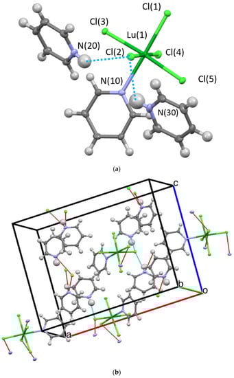 - Li, J.-S.; Neumuller, B.; Dehnicke, K. Pyridinium-Chlorometallate von Lanthanoid-Elementen. Die Kristallstrukturen von [HPy]2[LnCl5(Py)] mit Ln = Eu, Er, Yb und von [H(Py)2][YbCl4(Py)2] · Py. Z. Anorg. Allg. Chem. 2002, 628, 2785–2789. [Google Scholar] [CrossRef]