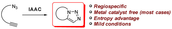 - John, J.; Thomas, J.; Dehaen, W. Organocatalytic Routes toward Substituted 1,2,3-Triazoles. Chem. Commun. 2015, 51, 10797–10806. [Google Scholar] [CrossRef]