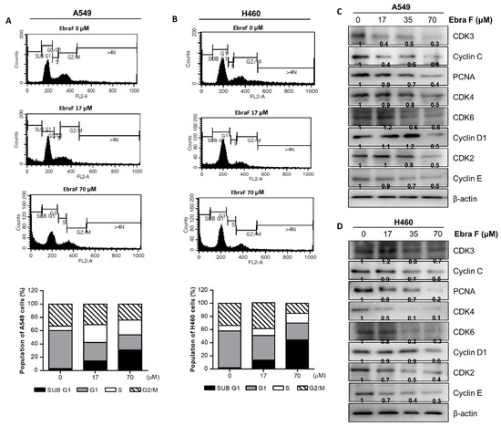 2.4. Ebractenoid F Arrested the Cell Cycle of Lung Cancer Cells