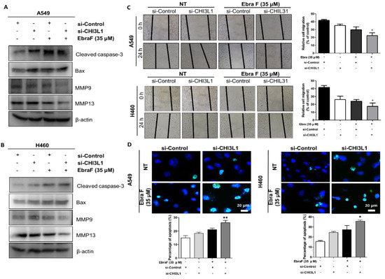2.7. Combination Effects of Ebractenoid F and CHI3L1 siRNA on Lung Cancer Cell Growth