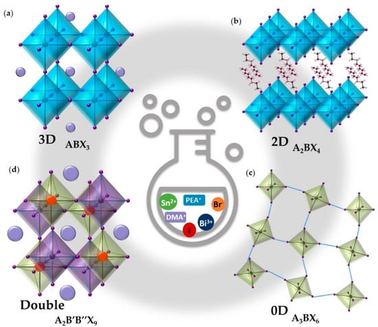 51. Xiao, Z.; Song, Z.; Yan, Y. From Lead Halide Perovskites to Lead-Free Metal Halide Perovskites and Perovskite Derivatives. Adv. Mater. 2019, 31, e1803792. [Google Scholar] [CrossRef] [PubMed]