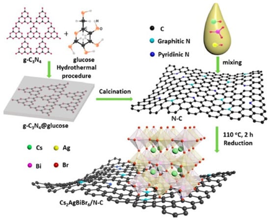 Figure 11. Preparation procedure of Cs2AgBiBr6/N-C photocatalyst. Reprinted with permission from ref [40]: Copyright 2021, American Chemical Society [40].