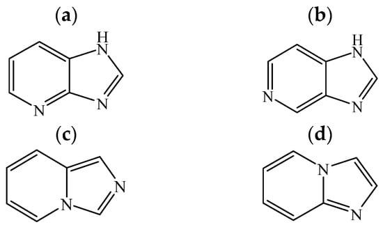 Isomer forms of imidazopyridines. (a) imidazo[4,5-b]pyridine; (b) imidazo[4,5-c]pyridine; (c) imidazo[1,5-a]pyridine; (d) imidazo[1,2-a]pyridine.
