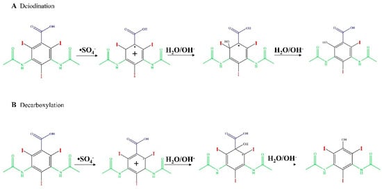 - Yang, J.; Luo, Y.; Fu, X.; Dong, Z.; Wang, C.; Liu, H.; Jiang, C. Unexpected degradation and deiodination of diatrizoate by the Cu(II)/S(IV) system under anaerobic conditions. Water Res. 2021, 198, 117137. [Google Scholar] [CrossRef]
