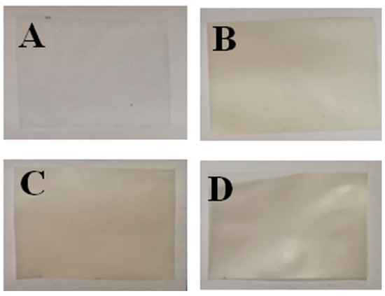 The images of four films (A) pure SA membrane; (B) SA/CW composite membrane; (C) SA/CW/G composite membrane; (D) SA/CW/G/Vc-Ca composite membrane).