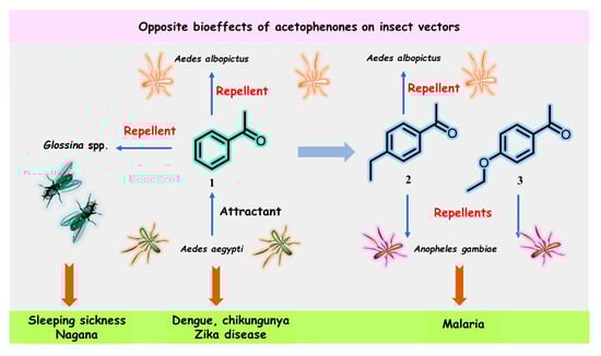 3. Acetophenone Is One of the Most Interesting Players in Skin Microbiota Manipulation by Vector-Borne Parasites Found in Animal-Feeding Insects