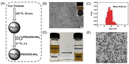 - Liu, Y.; Chen, T.; Wu, C.; Qiu, L.; Hu, R.; Li, J.; Cansiz, S.; Zhang, L.; Cui, C.; Zhu, G.; et al. Facile Surface Functionalization of Hydrophobic Magnetic Nanoparticles. J. Am. Chem. Soc. 2014, 136, 12552–12555. [Google Scholar] [CrossRef]