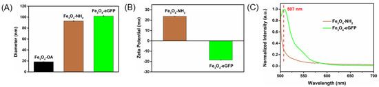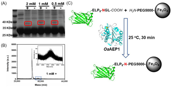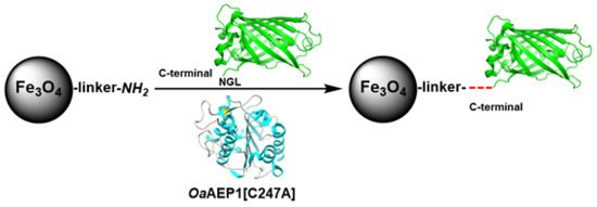 2.2. Immobilization of eGFP–ELP8–NGL on Fe3O4–NH2 Nanoparticle by OaAEP1