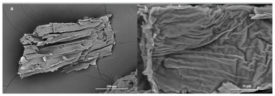 The strategy of using natural biomass to modulate the morphology of prepared materials and produce nanoscale catalysts with specific functions has attracted considerable attention [18,19]. Many TiO2 materials with specific morphologies have been synthesized from biotemplates such as leaves, flower petals [20,21], foliage [22,23], bamboo [24], wood [25,26], and cotton [27]. Biotemplates can effectively improve the photocatalytic activity of TiO2. Moreover, materials synthesized using biotemplates exhibit better photocatalytic degradation efficiency toward pollutants. Tobacco stem silk (TSS) is coarse and tobacco leaves have stratified veins. Consequently, these plant parts, whose microstructures are in the form of lamellar folds, are mostly discarded nowadays.