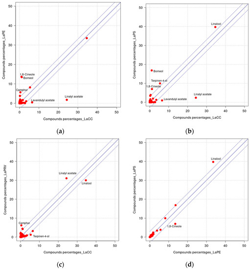 - Da Porto, C.; Decorti, D.; Kikic, I. Flavour Compounds of Lavandula angustifolia L. to Use in Food Manufacturing: Comparison of Three Different Extraction Methods. Food Chem. 2009, 112, 1072–1078. [Google Scholar] [CrossRef]