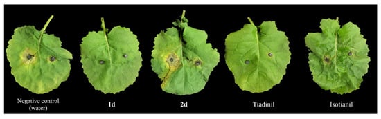 3.4. Protective Activity of Compounds 1d and 2d on Rape Leaves