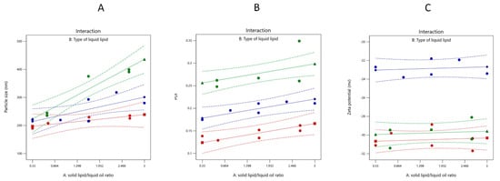 | X1: Solid Lipid: Liquid Lipid Ratio (SL/LO) | X2: Type of Liquid Lipid | Y1: PS (nm) | Y2: PDI | Y3: ZP (mv) | Y4: Aggregation upon Storage | |
