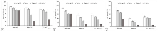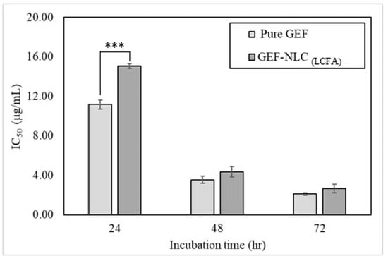 - Sherif, A.Y.; Harisa, G.I.; Alanazi, F.K.; Nasr, F.A.; Alqahtani, A.S. Engineered Nanoscale Lipid-Based Formulation as Potential Enhancer of Gefitinib Lymphatic Delivery: Cytotoxicity and Apoptotic Studies Against the A549 Cell Line. AAPS PharmSciTech 2022, 23, 183. [Google Scholar] [CrossRef]