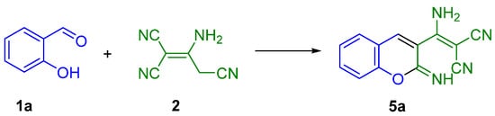 - Mittelbach, M. An improved and facile synthesis of 2-amino-1,1,3-tricyanopropene. Monatsh. Chem. 1985, 116, 689–691. [Google Scholar] [CrossRef]