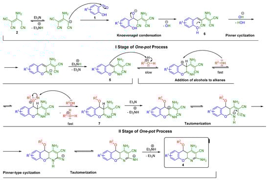 2.3. One-Pot Synthesis of 5-Alkoxy-5H-Chromeno[2,3-b]pyridines 4a–i
