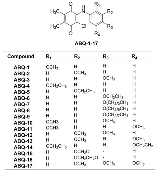 General chemical structure of ABQ-1-17 along with substitutions.