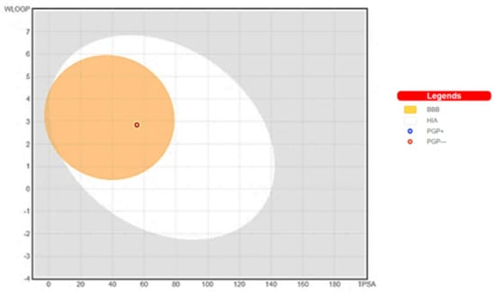 BOILED-Egg representation of ABQ-3 from SwissADME (Swiss Institute of Bioinformatics, Lausanne, Switzerland).