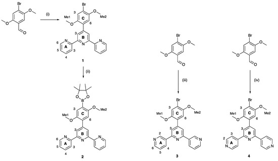 2.1. Synthesis and Characterization of Terpyridine Precursors 1–4