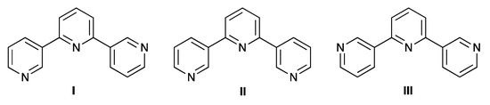 - Constable, E.C.; Housecroft, C.E. More hydra than Janus—Non-classical coordination modes in complexes of oligopyridine ligands. Coord. Chem. Rev. 2017, 350, 84–104. [Google Scholar] [CrossRef]