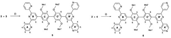 2.2. Synthesis and Characterization of the Asymmetrical Bis(Terpyridine) Ligands 5 and 6